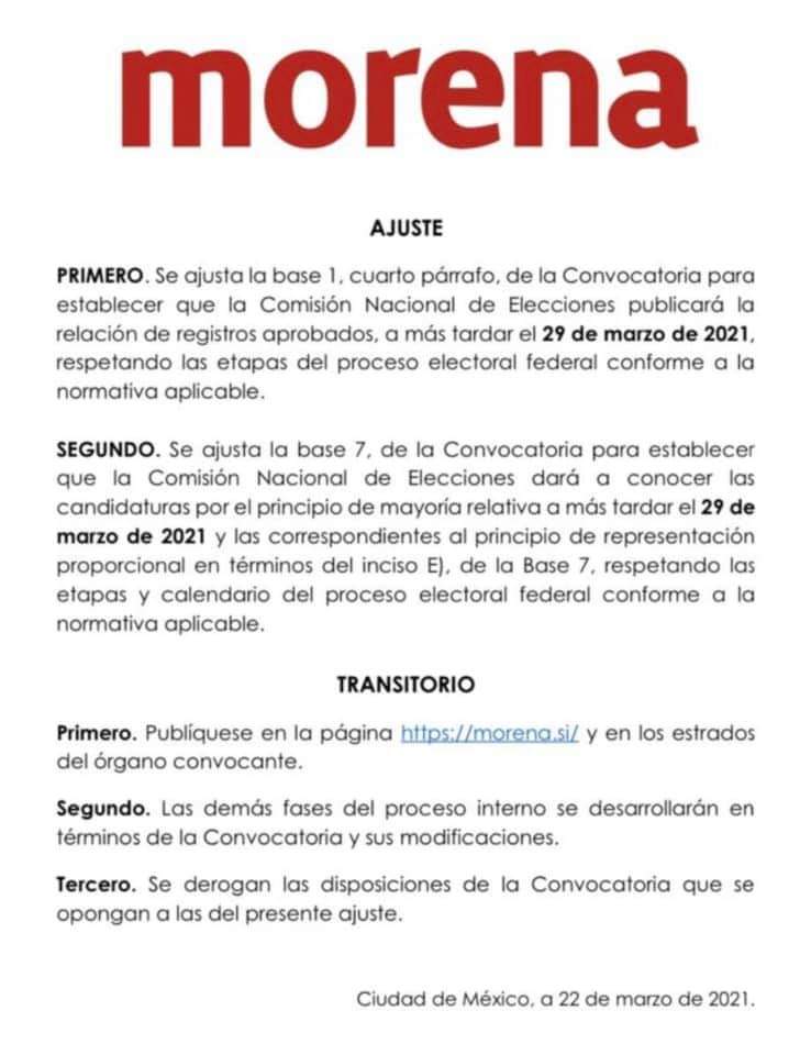 Cancún, Q. Roo, martes 23 de Marzo de 2021, poderycrítica.- La Comisión Nacional de Elecciones de MORENA realizó un nuevo ajuste a la convocatoria, y pasó para el 29 de marzo la fecha límite para dar a conocer las candidaturas a diputaciones federales, informó la dirigente de este partido en Quintana Roo, Anahí González Hernández.