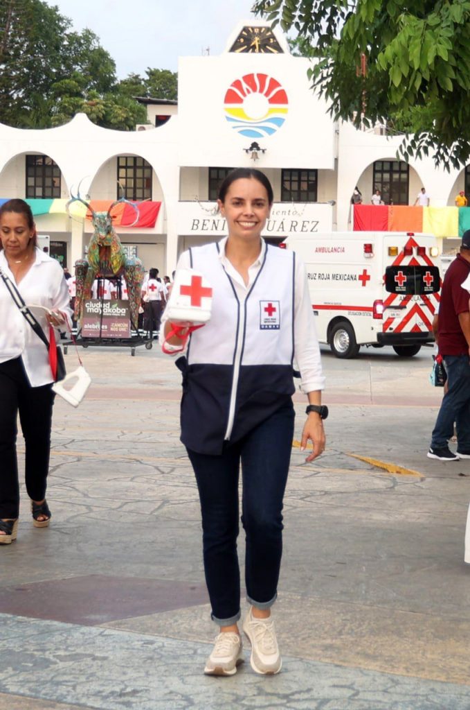PODER Y CRÍTICA | REDACCIÓN | Para poner el ejemplo de solidaridad, conciencia social y altruismo, portando el chaleco distintivo con el logotipo de la institución, la Presidenta Municipal, Ana Paty Peralta, se sumó con decenas de colaboradores de varias dependencias del Ayuntamiento de Benito Juárez al boteo de la Colecta Nacional de la Cruz Roja Mexicana, en las inmediaciones del Palacio Municipal, quienes además destacó, estarán apoyando en la actividad presentes en 14 diferentes puntos desde la fecha hasta el 26 de junio próximo.