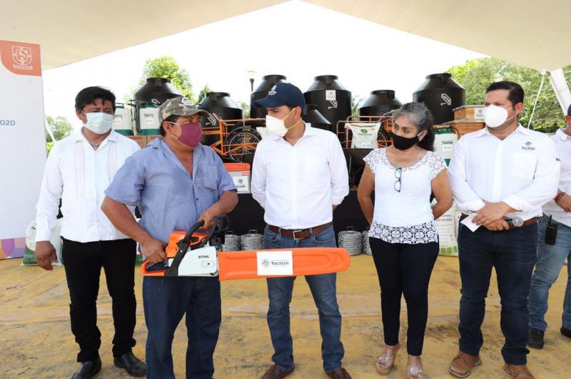 Yucatán, 15 noviembre; poderycrítica.-Productores agrícolas, agroindustriales, apícolas y ganaderos del municipio de Kaua recibieron del Gobierno de Mauricio Vila Dosal herramientas, maquinaria y materiales del programa «Peso a Peso», apoyo que llega de forma oportuna para detonar la recuperación del campo yucateco e impulsar los miles de empleos que este sector genera.