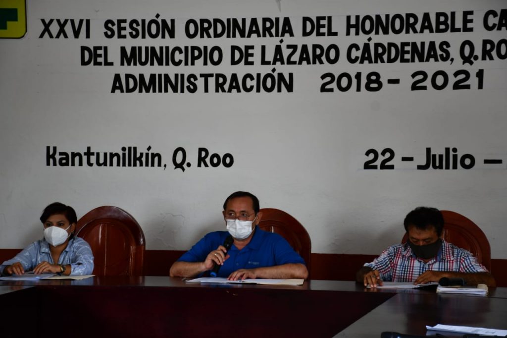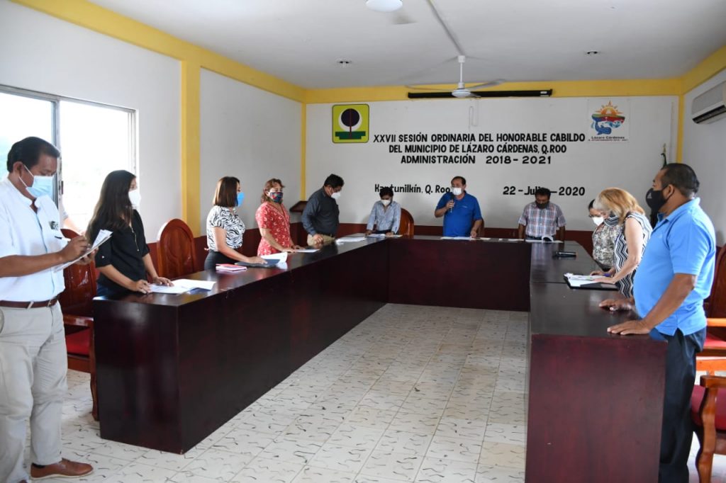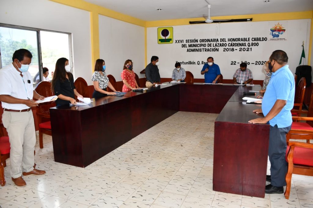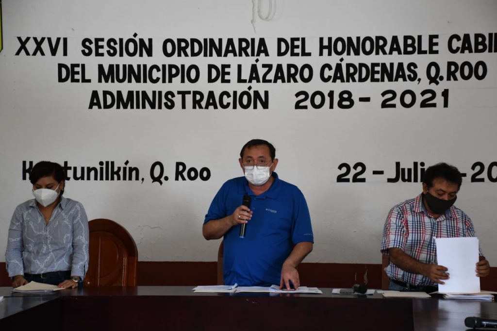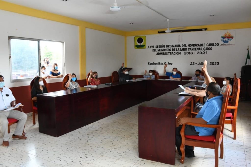Lázaro Cárdenas, Q. Roo, Miércoles 22 de julio de 2020, poderycrítica.- Continuando con el trabajo colegiado y buscando dar seguimiento al crecimiento de infraestructura y fortalecimiento del tejido social, el pleno del cabildo encabezados por el Presidente Municipal L.C.P. Nivardo Mena Villanueva sesionó para la aprobación de acciones concretas en beneficio del municipio.