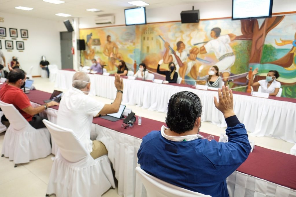 Cancún, Q. Roo, Lunes 27 de Abril de 2020, poderycrítica.- En un hecho histórico, durante la XXXVIII Sesión Ordinaria encabezada por la Presidente Municipal, Mara Lezama, el Cabildo de Benito Juárez aprobó, por unanimidad, la realización de sesiones de manera virtual por videoconferencia a través de plataformas digitales lo que dure esta situación, y por otro lado, se aprobó la Cuenta Pública 2019 del Municipio, que reporta un superávit gracias a la reducción del gasto público.