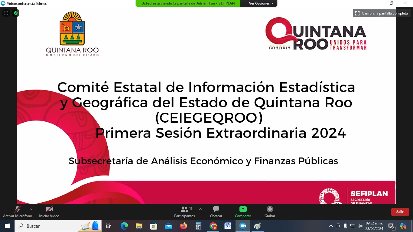PODER Y CRÍTICA | REDACCIÓN | Con el objetivo de aprobar el Programa Estatal de Estadística y Geografía que contiene los ejes rectores en materia de generación de información de 2024 a 2027, la Secretaría de Finanzas y Planeación (SEFIPLAN) presidió la Primera Sesión Extraordinaria 2024 del Comité Estatal de Información Estadística y Geográfica del Estado de Quintana Roo (CEIEGEQROO), integrado por 18 instituciones de la administración pública estatal.