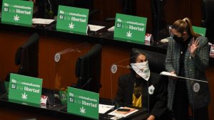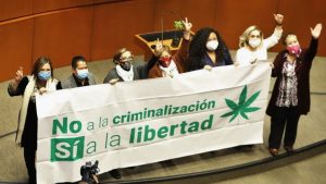 Por su parte, un grupo de legisladoras de Morena subió a la tribuna para mostrar una pancarta: “No a la criminalización. Sí a la libertad”. “El estigma de mariguanos (sic) se termina”, indicó el senador morenista Miguel Ángel Navarro.