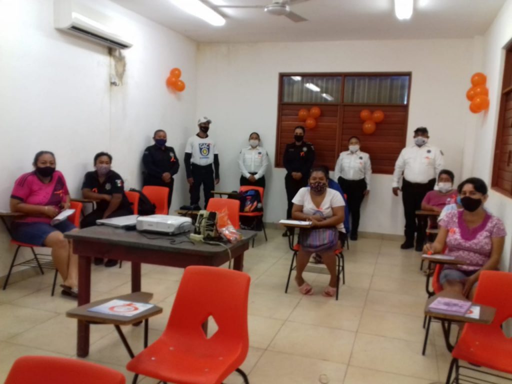 La capacitación que benefició a once féminas que asistieron al taller, fue impartida por personal de la policía municipal: la licenciada Ana Cecilia Rangel Alcalá, la Policía 3° María Danilú Ac Tuyub, la licenciada Seidy Areli Fuentes Dzib, el licenciado Jesús Antonio Gómez Barrera, Giovanni Alberto Puc Chi, quien estuvo como apoyo del grupo de capacitadores.