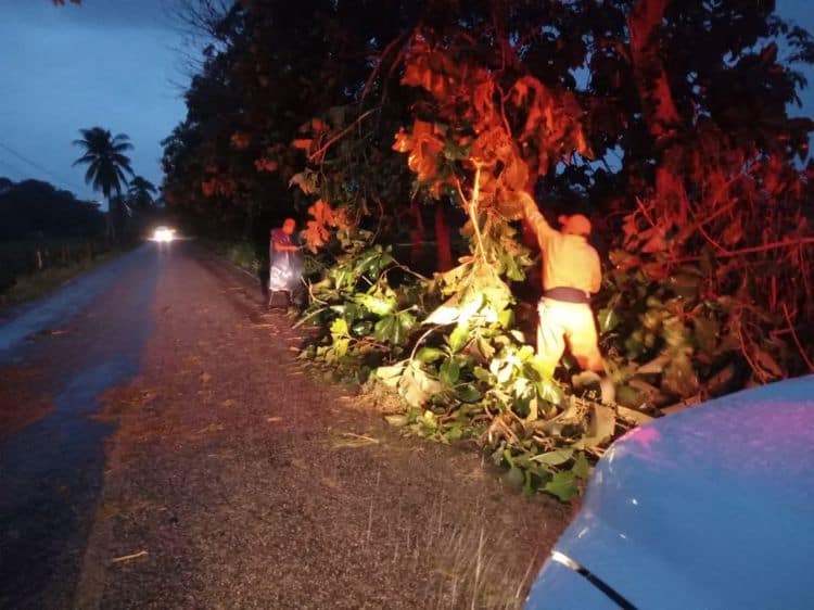 Entre las acciones destacadas, se mencionó el retiro de un árbol de teca que bloqueaba parcialmente la carretera Teapa–Galeana, donde la circulación fue restablecida de forma segura.