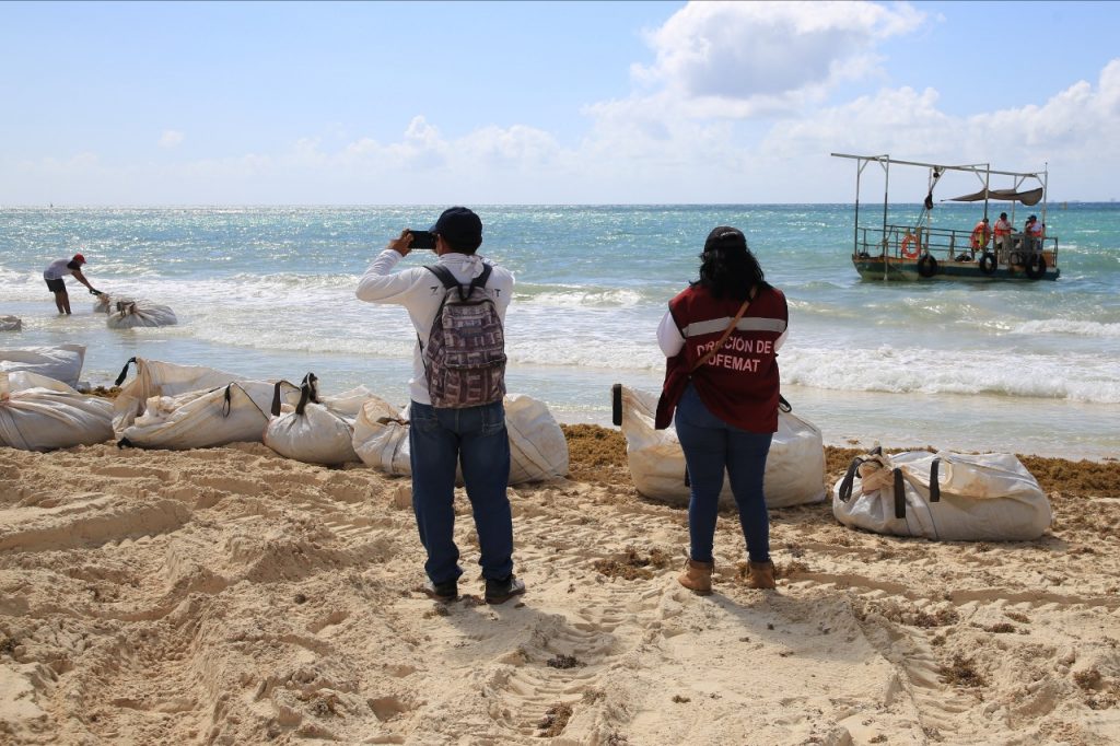 Las operaciones de recolección se estarán realizando a 500 metros frente al litoral, en un tramo de 2.5 kilómetros que abarca entre la terminal marítima de Playa del Carmen y la avenida CTM, con embarcaciones que tienen la capacidad de recolectar hasta 28 toneladas de sargazo por hora.