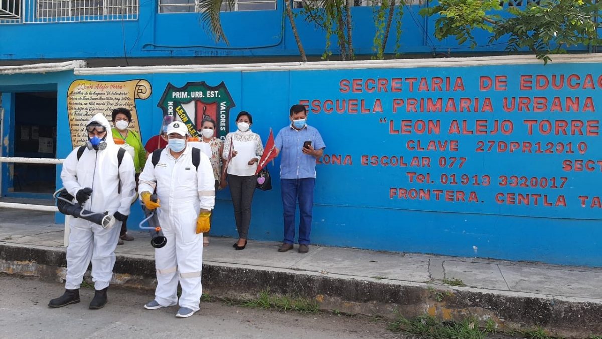 En el primer día de este programa, donde fueron sanitizadas 149 escuelas de diversos municipios, la titular del sector educativo supervisó las acciones de sanitización en tres planteles educativos de Comalcalco: las Primarias “Antonio Ferrer León” y “José A. Gómez May”, así como la Telesecundaria “José del Carmen Rivera Taracena”.