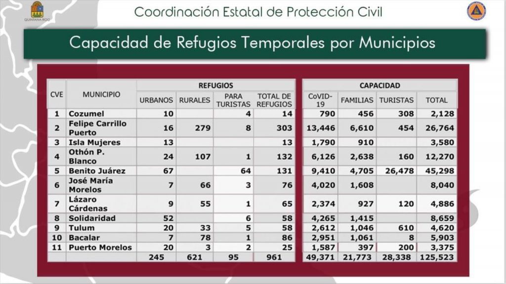 Para proteger a las y los quintanarroenses en esta #TemporadadeHuracanes2021 tenemos validados hasta el momento 961 refugios de los cuales 621 son rurales para nuestra población vulnerable, 245 urbanos y 95 refugios para turistas.