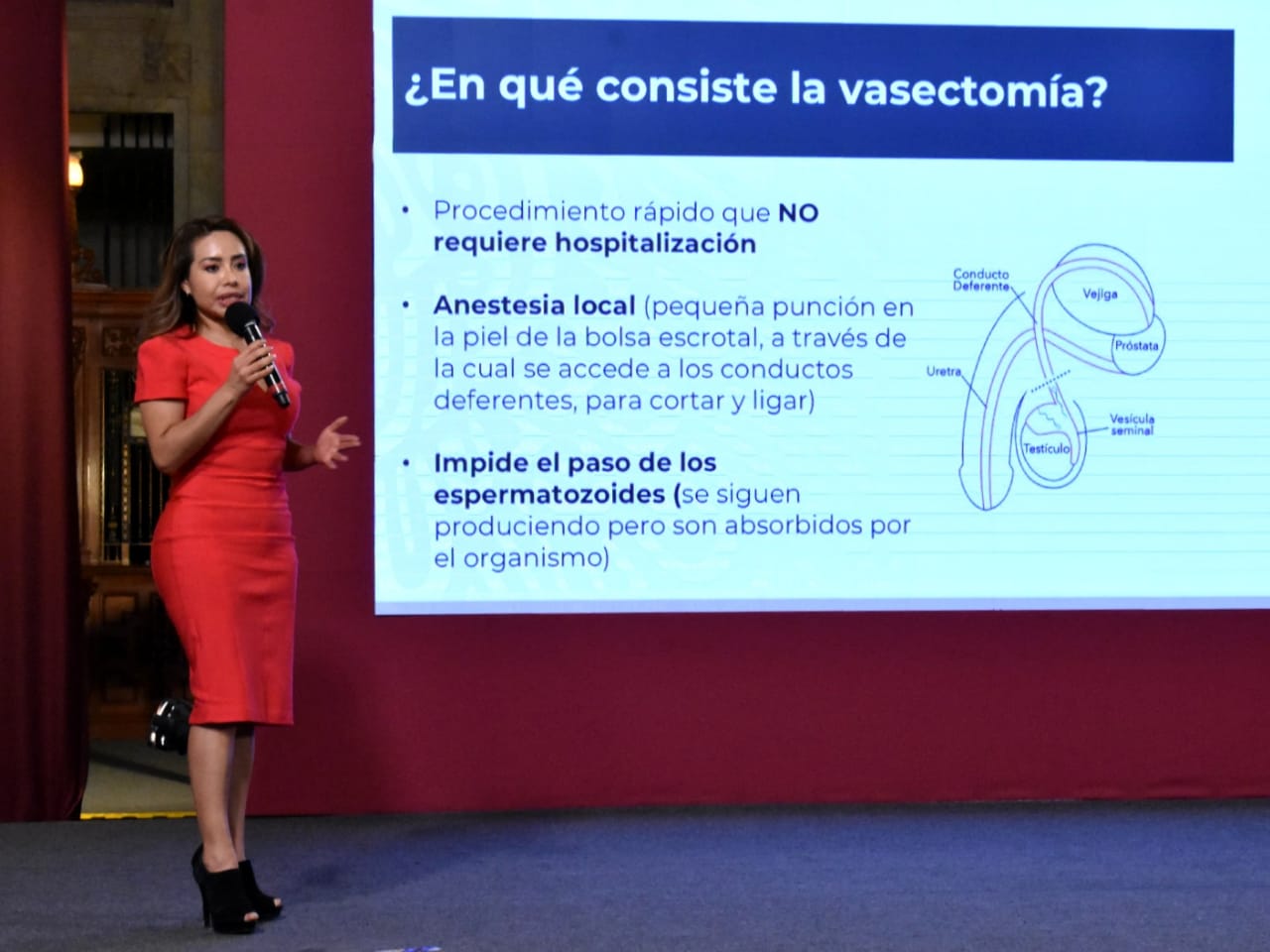 Al referirse a la vasectomía sin bisturí, dijo que es un método permanente ideal para hombres que ya no desean tener hijas e hijos, y se encuentra disponible de forma gratuita en todos los servicios públicos de salud.