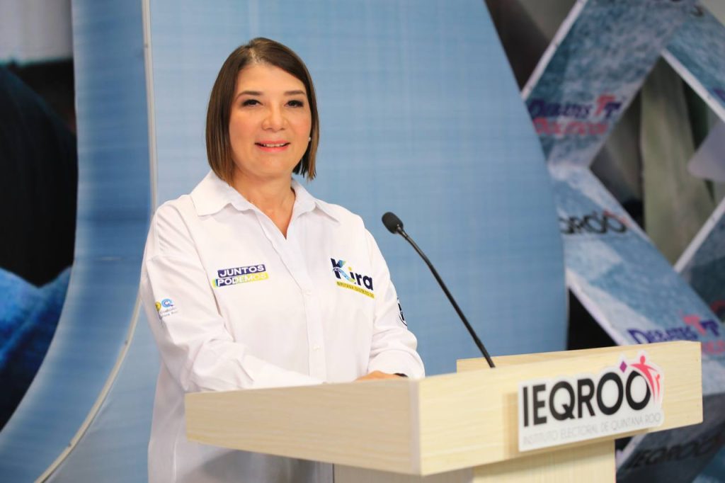 PODER Y CRÍTICA | REDACCIÓN | Con propuestas claras y concretas Kira Iris, candidata de la alianza “Va por Quintana Roo” por el Distrito 10, arrasó durante el debate oficial organizado por el Instituto Electoral de Quintana Roo, en la ciudad de Chetumal, en donde mostró que tiene más experiencia que los demás candidatos.
