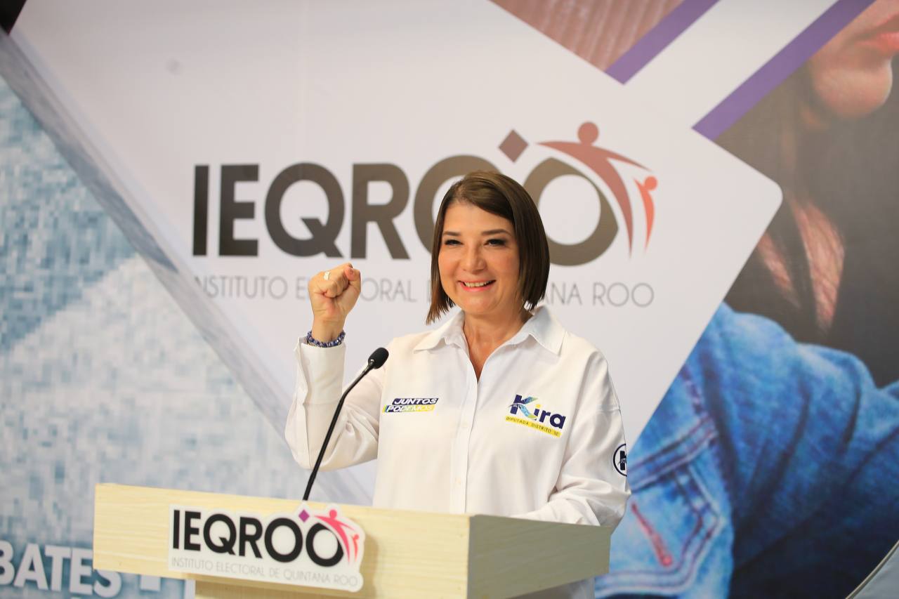 PODER Y CRÍTICA | REDACCIÓN | Con propuestas claras y concretas Kira Iris, candidata de la alianza “Va por Quintana Roo” por el Distrito 10, arrasó durante el debate oficial organizado por el Instituto Electoral de Quintana Roo, en la ciudad de Chetumal, en donde mostró que tiene más experiencia que los demás candidatos.