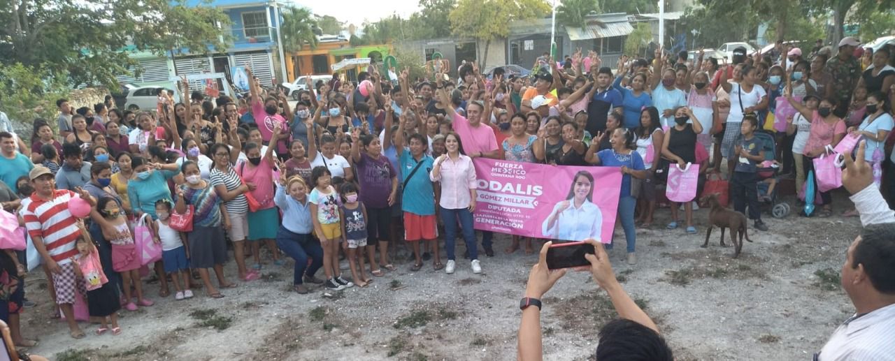 PODER Y CRÍTICA | REDACCIÓN | Con la fuerza de la gente, Odalis Gómez, candidata a diputada del partido Fuerza por México (FXM), recibió apoyo masivo de simpatizantes del partido Verde y Morena en Cuna Maya, en el Distrito 2.