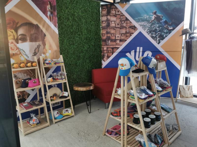 Representantes de Tekax, Izamal y del Instituto Yucateco de Emprendedores (IYEM) ocupan dos de los módulos de esta exhibición, mismos que la Sefotur decoró con algunas imágenes de Yucatán, como parte de la estrategia de promoción y posicionamiento de marca del destino ante quienes usan la terminal.