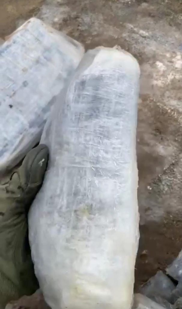 En el lugar localizaron 19 paquetes llenos y uno vacío, conteniendo en su interior producto con características similares a la cocaína.
