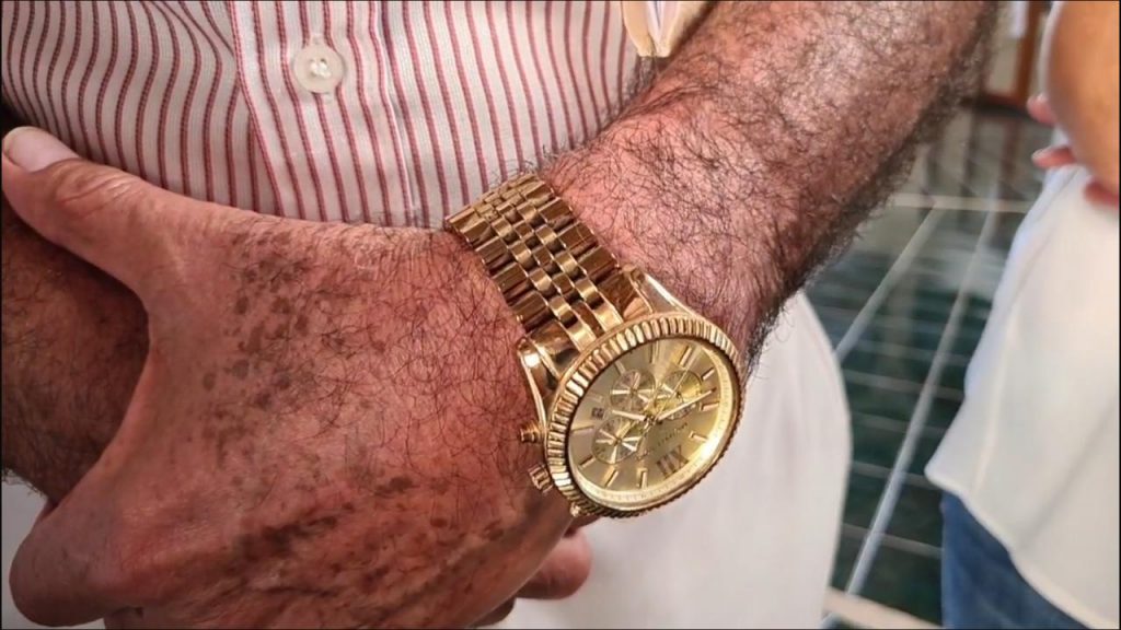 Y finalmente negó que tenga un reloj de 937 mil pesos como se dijo en redes sociales, por lo que mosto que su reloj “imitación” ya tiene descompuesto el extensible.