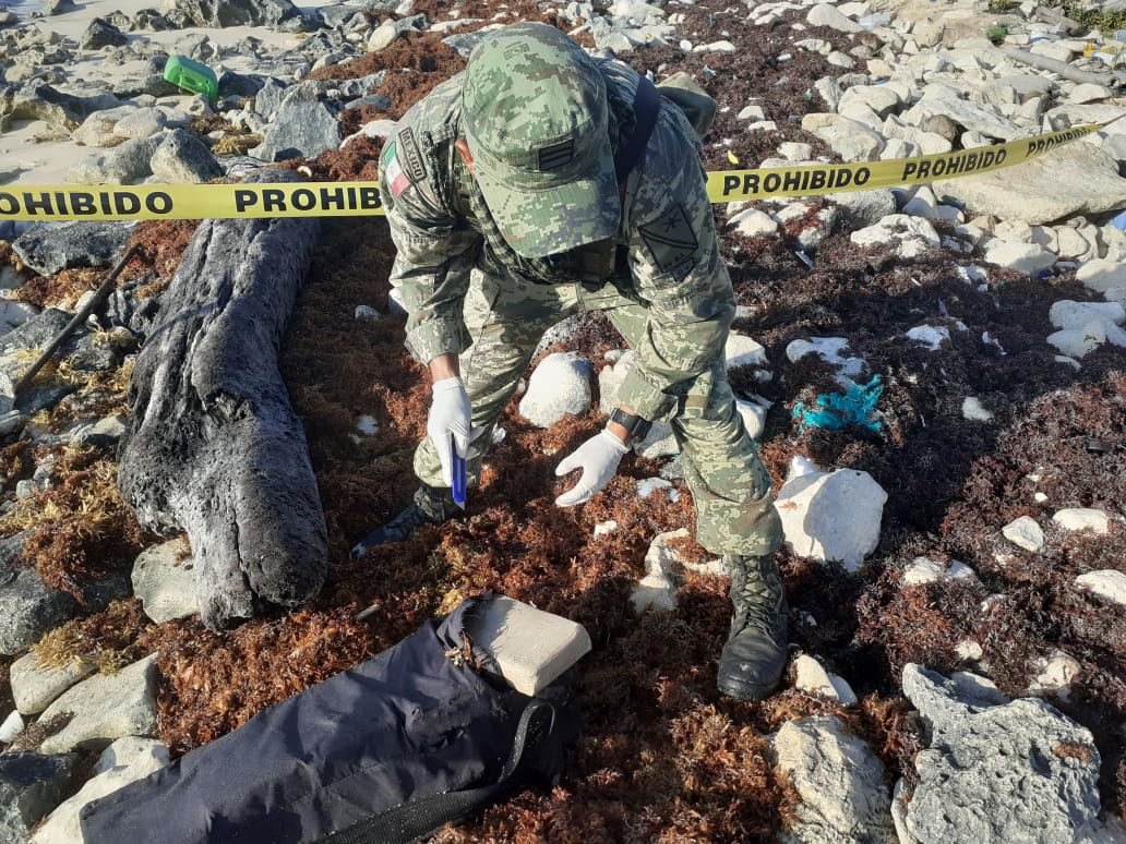 Cozumel, Q. Roo, Martes 24 de marzo de 2020, poderycrítica.- Un total de 20 kilogramos de cocaína fueron aseguradas en el tramo de Punta Arrecifes-Castillo Real de la isla, por elementos de la Secretaría de la Defensa Nacional (Sedena).