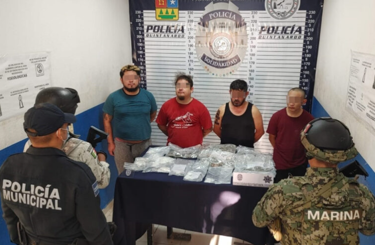 Tras realizar una revisión tanto al vehículo en el que se trasportaban como a los cuatro hombres, identificados como Jaime “N”, de 45 años de edad, originario de Michoacán; Víctor “N”, de 18 años, de esta ciudad; Samuel “N”, de 30, de Chetumal, y Omar “N”, de 31, de Aguascalientes, se les encontró varios cantidades y tipos de droga.