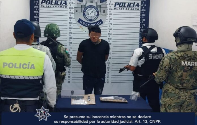 PODER Y CRÍTICA | REDACCIÓN | Policías de la Secretaría de Seguridad Pública y Tránsito Municipal de Solidaridad, ubicaron y aseguraron a un sujeto por el posible delito de homicidio en grado tentativa, por los hechos ocurridos en un bar ‘Mandala’ ubicado sobre la calle 12 con avenida Primera, en la zona turística de Playa del Carmen. Además, fueron aseguradas 2 armas de fuego.