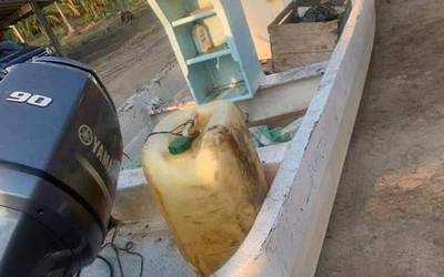 Al realizar la revisión de la unidad, se percataron que la embarcación cuenta con un motor y una nevera adaptada con doble fondo, en donde localizaron los 75 paquetes confeccionados en forma rectangular, así como diversos bidones vacíos.