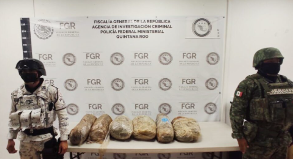 El aseguramiento de la marihuana estuvo a cargo de personal del Ejército y de la Guardia Nacional, quienes trasladaron el material a la ciudad de Cancún para su puesta a disposición de la Fiscalía General de la República (FGR).
