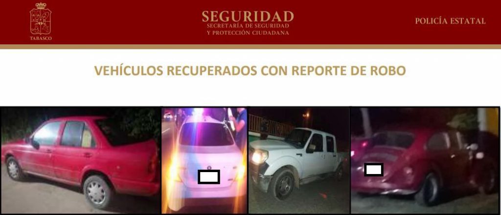 También se recuperaron 4 vehículos con reporte de robo así como el aseguramiento de 3 unidades.