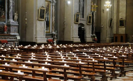 En la ordenanza del Ministerio del Interior italiano se puede leer que en los templos deberá mantenerse al menos un metro de separación entre los fieles, tanto frontal como lateral.