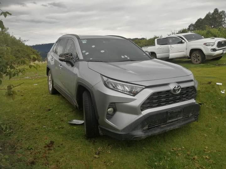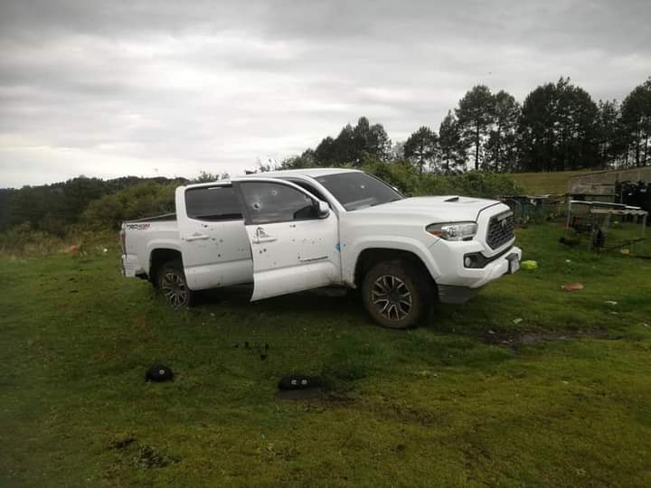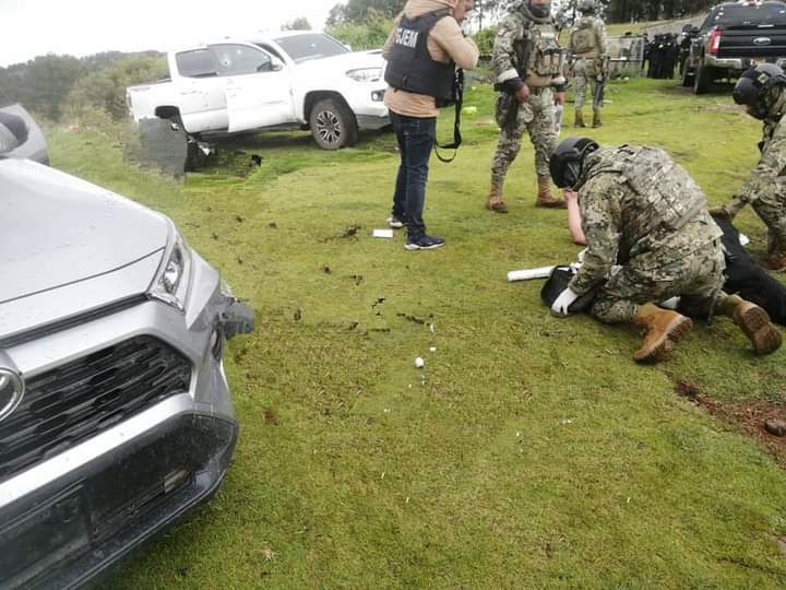 Tras la refriega en el lugar quedaron siete muertos integrantes del grupo criminal, así como cinco detenidos, entre ellos una mujer y dos camionetas que quedaron con impactos de arma de fuego, una color blanco y una color gris.