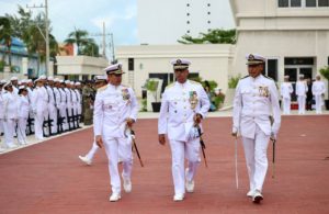 Previo a la ordenanza al Lábaro Patrio, el nuevo comandante realizó el pase de lista del contingente naval y se llevó a cabo el toque “Tres de Diana” en honor al inicio de su encomienda.