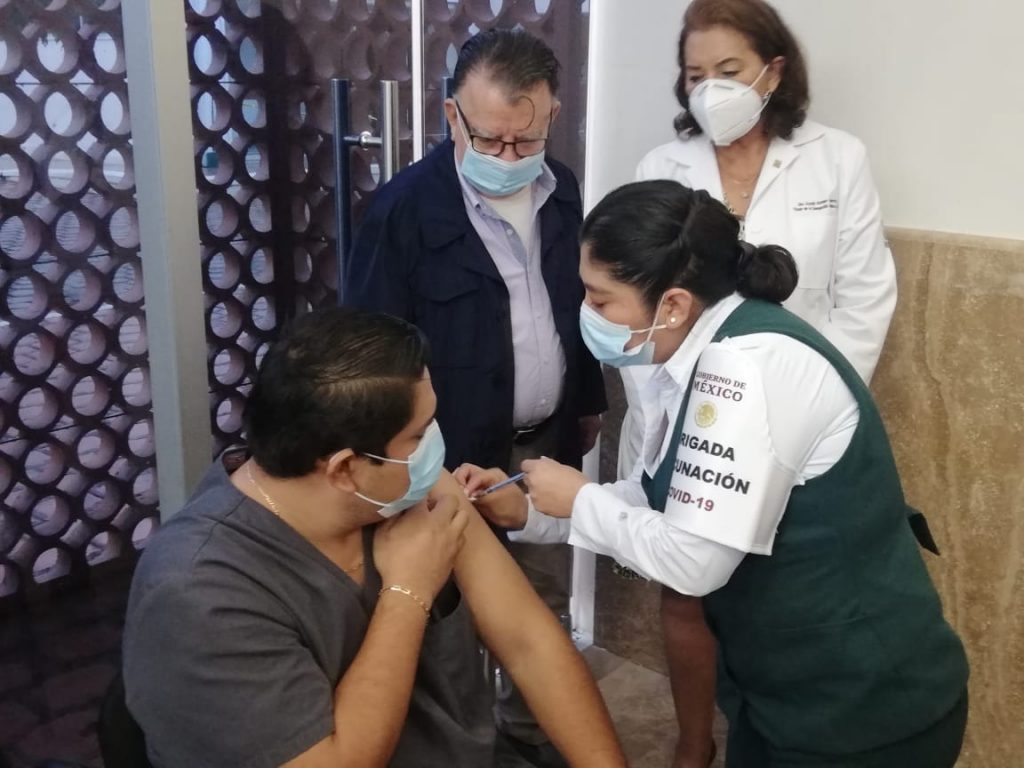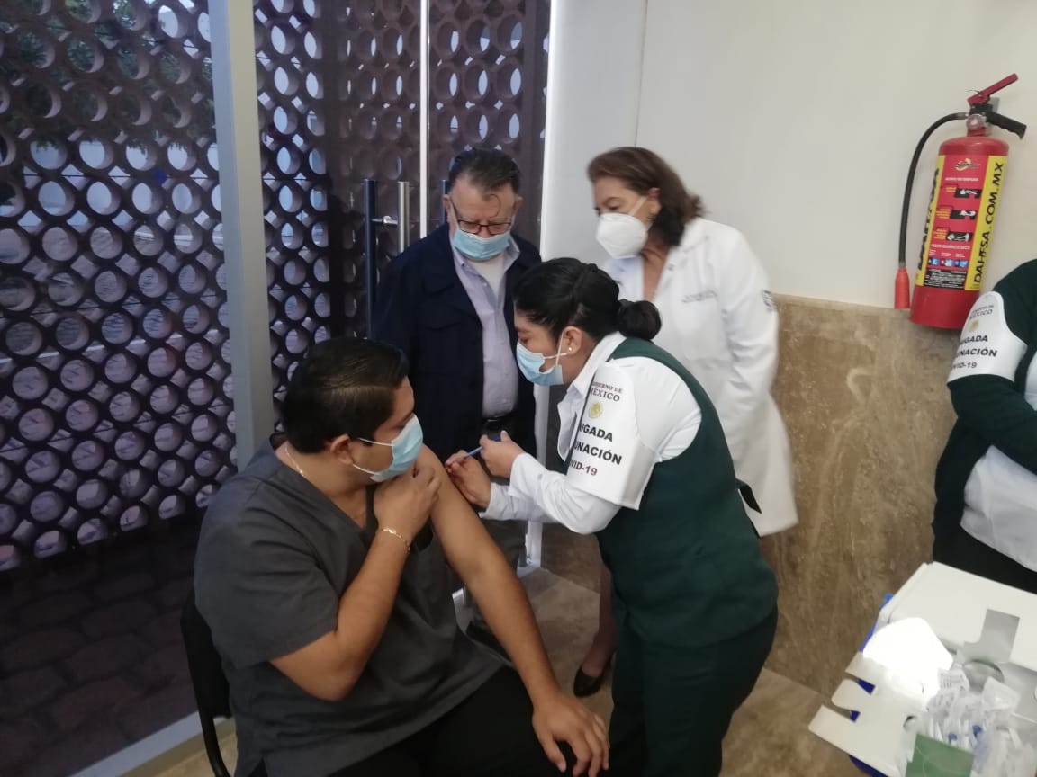 En el caso de las instituciones federales la primera vacuna fue para el doctor Carlos Orlando Cauich Chablé, integrante del cuerpo médico y personal de salud del hospital del Instituto Mexicano del Seguro Social (IMSS).