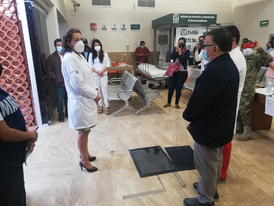 En el área de Imagenología del Hospital general se aplicaron las primeras vacunas del sector salud local. Las primeras dosis fueron para la enfermera Juan Álvarez Carrión y médico general Hugo Enrique Magaña López.