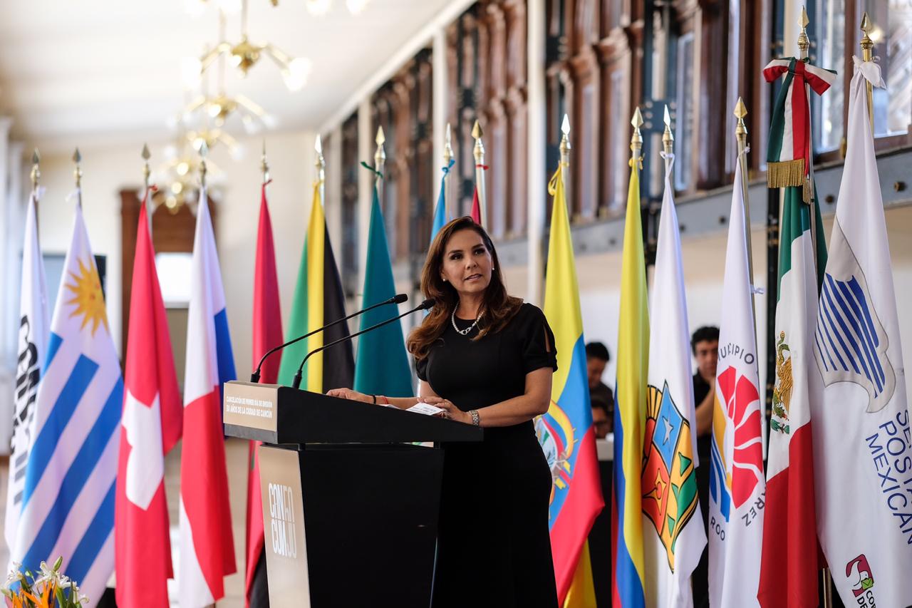 La Presidente Municipal de Benito Juárez, Mara Lezama, atestiguó en el Palacio Postal, la cancelación de la primera estampilla postal conmemorativa de la emisión de circulación nacional, que servirá para el servicio de correos en la promoción y visibilidad del festejo de 50 Aniversario de Cancún.
