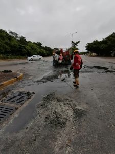 Playa del Carmen, Q. Roo, Viernes 02 de Octubre del 2020, poderycrítica.- Frente a la inminente llegada de la depresión tropical número 25 a la entidad, el gobierno de Laura Beristain Navarrete, desplegó las brigadas de Servicios Públicos en diversos puntos de Solidaridad, para atender reportes de encharcamientos, pues el pronóstico para el municipio es de lluvias torrenciales.