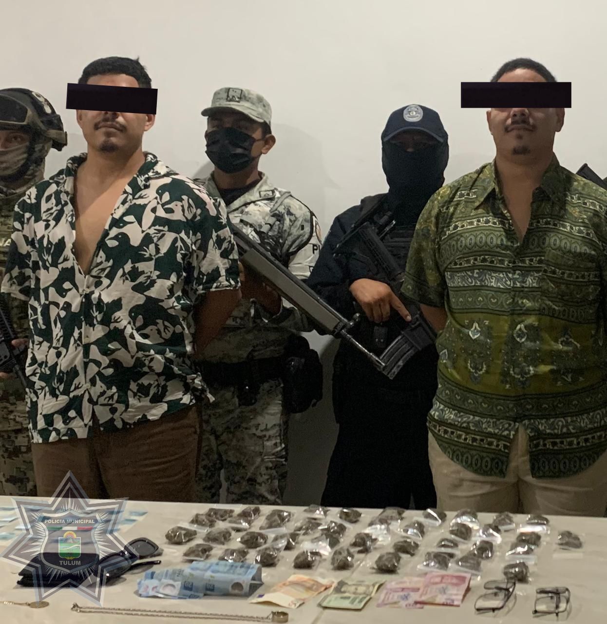 PODER Y CRÍTICA | REDACCIÓN | Con una cantidad de diversas drogas se detuvo a Alfredo “V” y Francisco “V” en la zona hotelera de este destino turístico, cuando merodeaban cerca del restaurante Funky Geisha, informó la Policía Municipal.