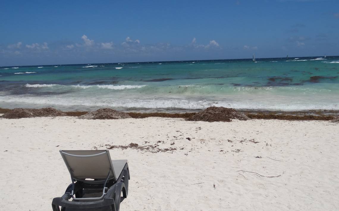 Este martes la en la zona de Playacar, justo a un costado de la terminal marítima de Playa del Carmen, ya se apreciaba una larga línea de sargazo acumulado, así como un gran manchón acercándose desde la orilla en el mar, sin embargo no había ningún “sargacero” trabajando.