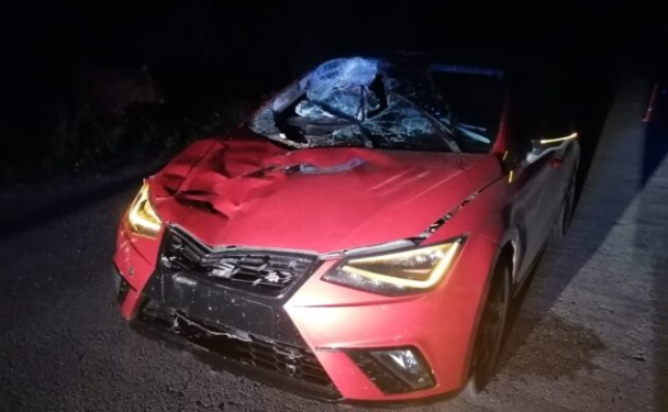 El vehículo, un Seat rojo con placas de Quintana Roo, sufrió fuertes daños en su parte frontal derecha, producto de esta colisión, ocurrida la madrugada de hoy lunes. El ejemplar vacuno, en cambio, no parecía haber sufrido fuertes lesiones, al igual que el conductor, que quedó ileso.