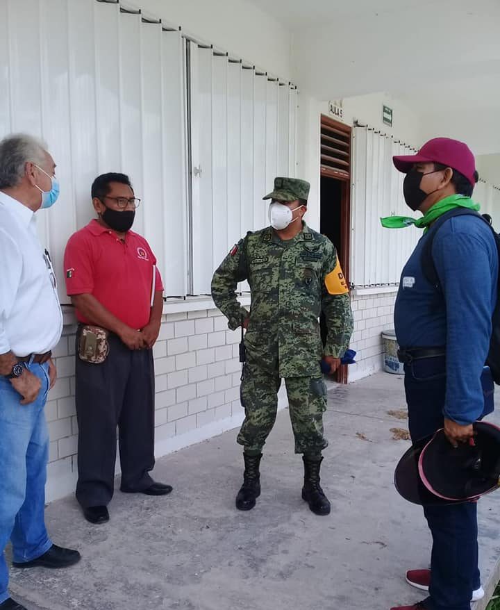El contingente coordinado por el 7/o. Regimiento de Caballería Motorizada, en la que participaron autoridades de la COFEPRIS, Protección Civil Municipal y autoridades escolares, inspeccionaron diversas escuelas para habilitarlas como refugios previo acuerdo con la SEyC para ser aperturadas, la prioridad es poner a las familias evacuadas en caso de emergencias a salvo y puedan ser recibidas en refugios y albergues anticiclónicos.
