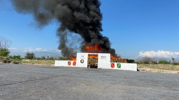 En total se quemaron seis toneladas con 50 kilos de marihuana, 127.9 kilos de clorhidrato de cocaína, 35.4 kilos de metanfetaminas, 12.04 kilos de cocaína, dos mil 398 pastillas y casi dos kilos de otras sustancias.