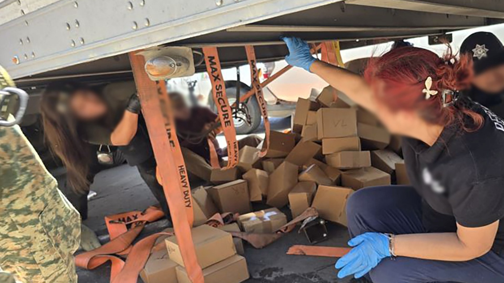 Dentro del compartimiento alterado se hallaron 564 paquetes con un total de mil 140 kilos de metanfetamina, lo que representa una afectación económica estimada en 308 millones de pesos, equivalente a unos 16.4 millones de dólares, para las organizaciones delictivas.