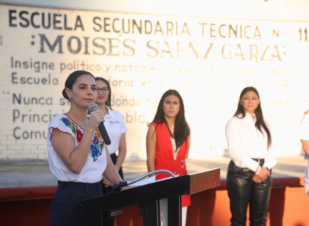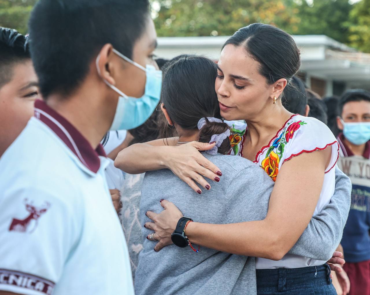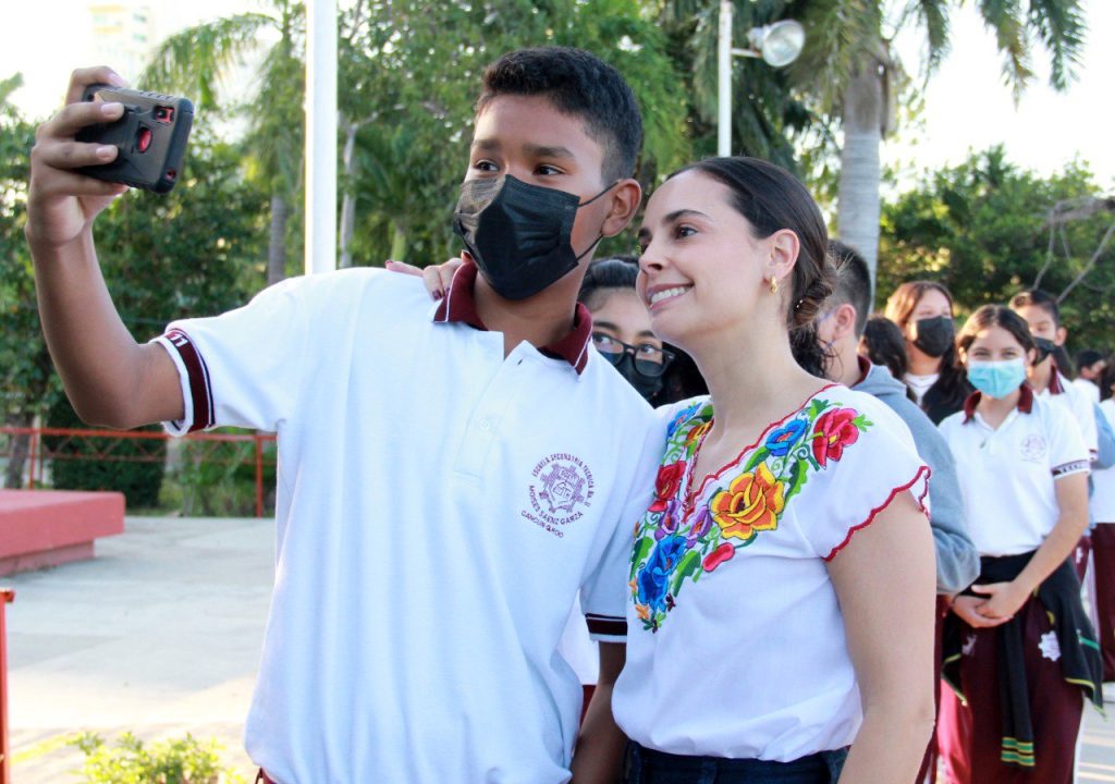 Durante su visita en la escuela secundaria técnica número 11, “Moisés Sáenz Garza”, fundada en septiembre de 1974, la Presidenta Municipal convivió con la comunidad estudiantil, a quienes les reiteró luchar por sus sueños para que logren sus objetivos, ya que representan a futuros profesionistas que velarán por el crecimiento de Cancún.