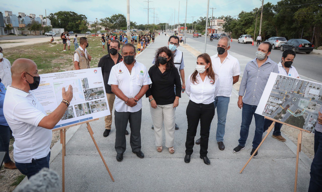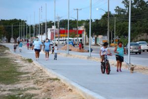 “Al terminar esta obra, en la que además se está haciendo uso de concreto ecológico, las y los cancunenses podrán hacer uso de la moderna ciclovía de más de 63 mil metros cuadrados que se construye, junto con espacios verdes, que se convertirán en lugares de referencia y reunión de las familias”, resaltó la Presidenta Municipal, Mara Lezama.