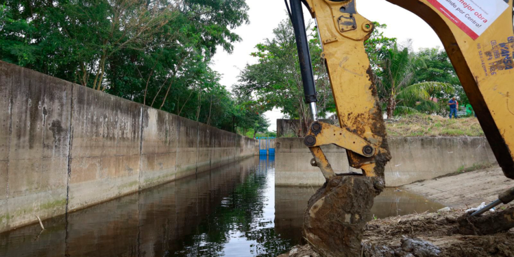 Los trabajos incluyeron quitar la costalería colocada anteriormente y ahora la zona en este espejo de agua se observa despejado; mientras tanto se continúan las labores de retiro manual de maleza en el otro cuerpo de agua de la compuerta, en cuyo caso se lleva un 60 por ciento de avance.