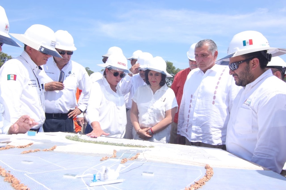 En un recorrido de supervisión de los trabajos para la conformación de plataformas para la refinería en Dos Bocas, por ese punto costero de Paraíso, la titular de la Sener y especialistas de la empresa holandesa Van Oord, encargada del acondicionamiento del terreno, dieron a conocer que los trabajos del complejo en el que se invertirán alrededor de ocho mil millones de dólares, avanzan conforme a lo programado.