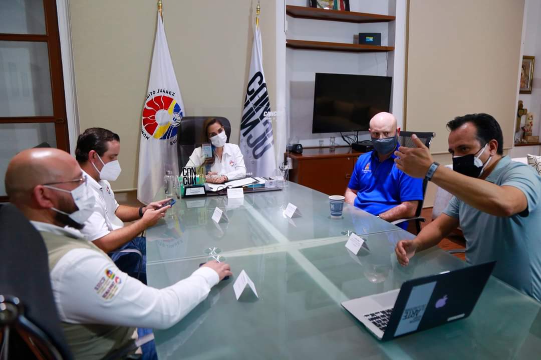 Cancún, Q. Roo, Miércoles 24 de Marzo de 2021, poderycrítica.- Antonio López Pinzón, presidente de la Comisión para la Juventud y el Deporte de Quintana Roo (COJUDEQ), acompañado de Gabriel Ramos Rodríguez, enlace operativo para los torneos del Cancún Hub, sostuvo una reunión con el equipo de trabajo del municipio de Benito Juárez, encabezado por su presidenta Mara Lezama, el director del Instituto del Deporte, David Martínez y Francisco Díaz Lara, de la ZOFEMAT.