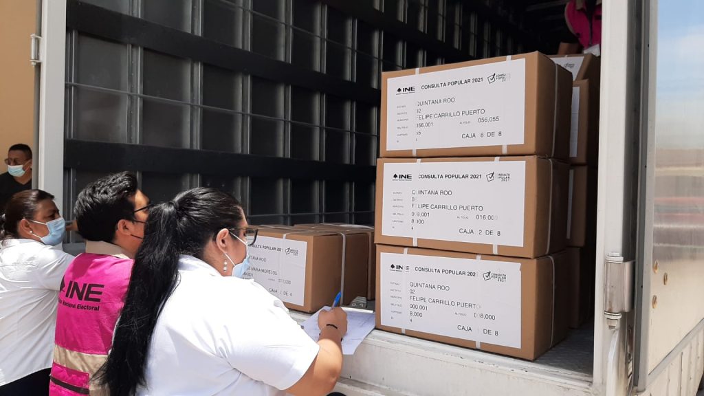 Recordó que llegaron en días pasados, un millón 314 mil papeletas las cuales serán distribuidas en las cuatro Juntas Distritales del Instituto Nacional Electoral, para la Consulta Popular para Enjuiciar a Ex presidentes de México.