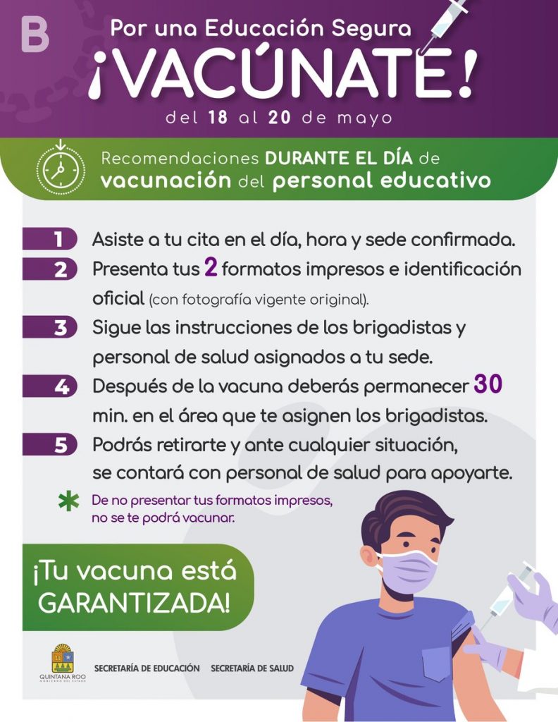 AVANZA REGISTRO DE PERSONAL EDUCATIVO PARA VACUNACIÓN COVID-19 EN QUINTANA ROO