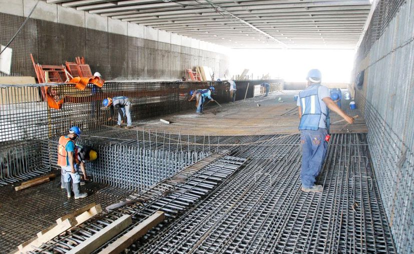 En la sección oriente hasta este momento se conserva aún la mitad de la bóveda anterior, que se está utilizando actualmente para el desalojo de aguas. Esta semana se reportaron avances importantes en las labores del armado del doble emparrillado de varillas.