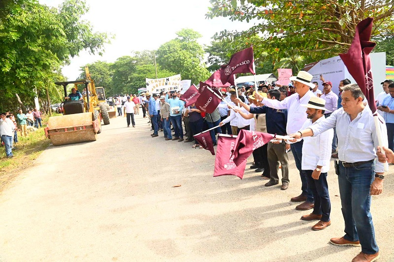 En compañía del alcalde Erick Garrido Argáez, el mandatario estatal dio el banderazo a la primera etapa de la repavimentación de la carretera La Pitahaya-Federico Álvarez, y entregó la pavimentación con concreto asfáltico del camino Zapatero-Jonuta, así como la ampliación del puente San Pedro, punto en el que se anunció el rescate de la vía que comunica al poblado José María Pino Suárez.