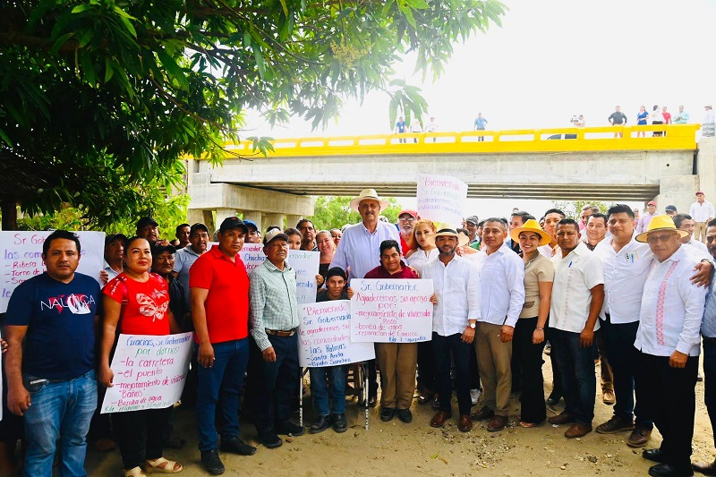En su reencuentro con los jonutecos, Merino Campos se trasladó a la ranchería Encarnación, para inaugurar la ampliación del puente de concreto «Pino Suárez» y acceso al camino Jonuta-Frontera, una obra en la que el Gobierno del Estado a través de la SOTOP invirtió 15.5 millones de pesos en beneficio de 31 mil habitantes.