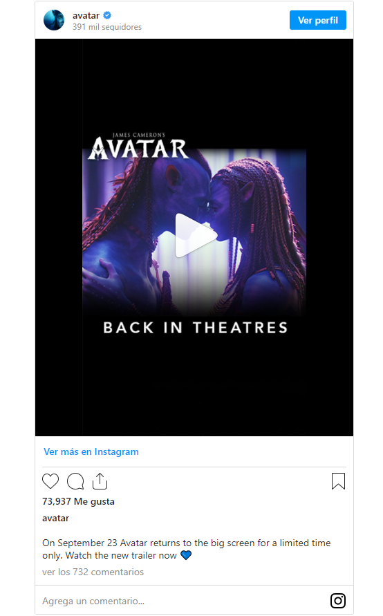 Por tal motivo, la primera cinta de la saga volverá a las salas el 22 de septiembre. Lo hará, como cuando salió 2009, en 3D y ahora también en otros formatos premium como 4K. Por ello estrenó tráiler.