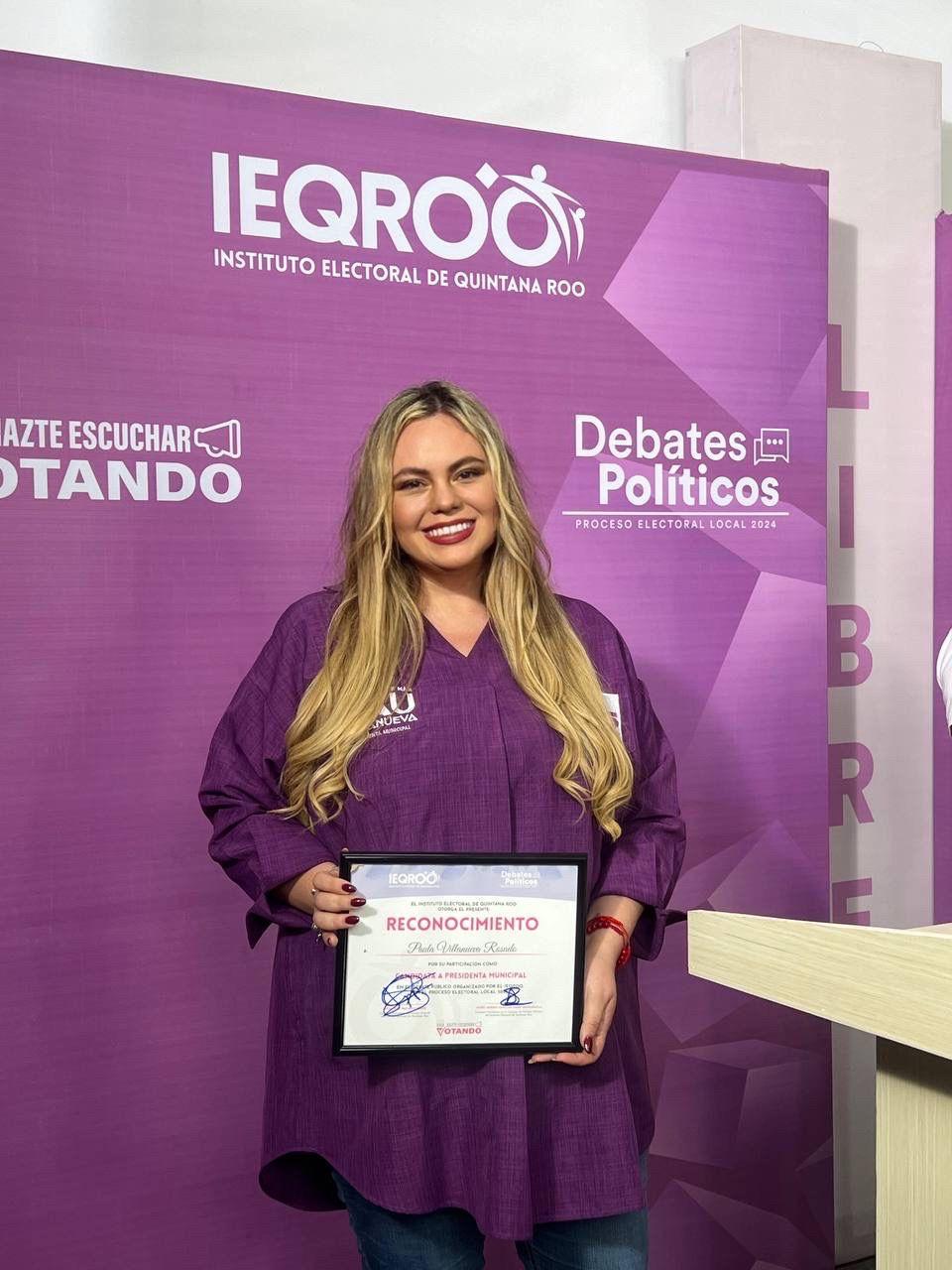 PODER Y CRÍTICA | REDACCIÓN | La candidata a la presidencia municipal de Benito Juárez por Más Apoyo Social (MAS), Paula Villanueva Rosado, sobresalió con propuestas ciudadanas ante sus correligionarios, durante el debate organizado por el Instituto Electoral de Quintana Roo (IEQROO), en la Biblioteca Nacional de la Crónica en esta ciudad.